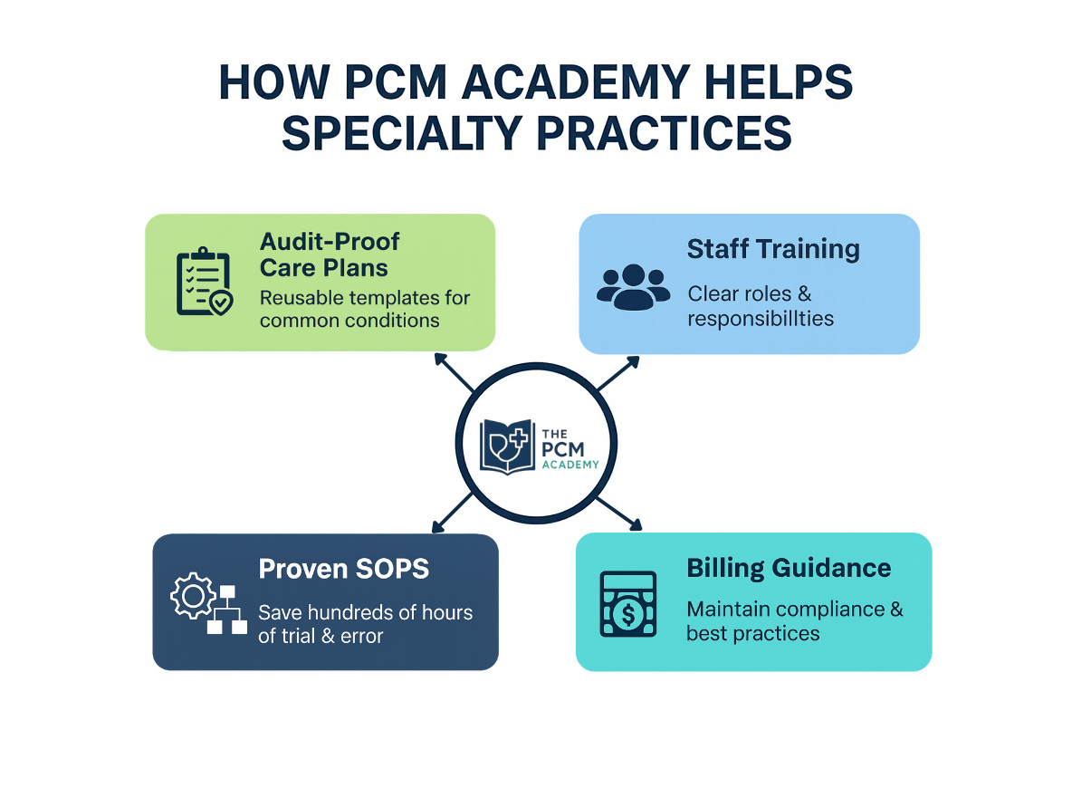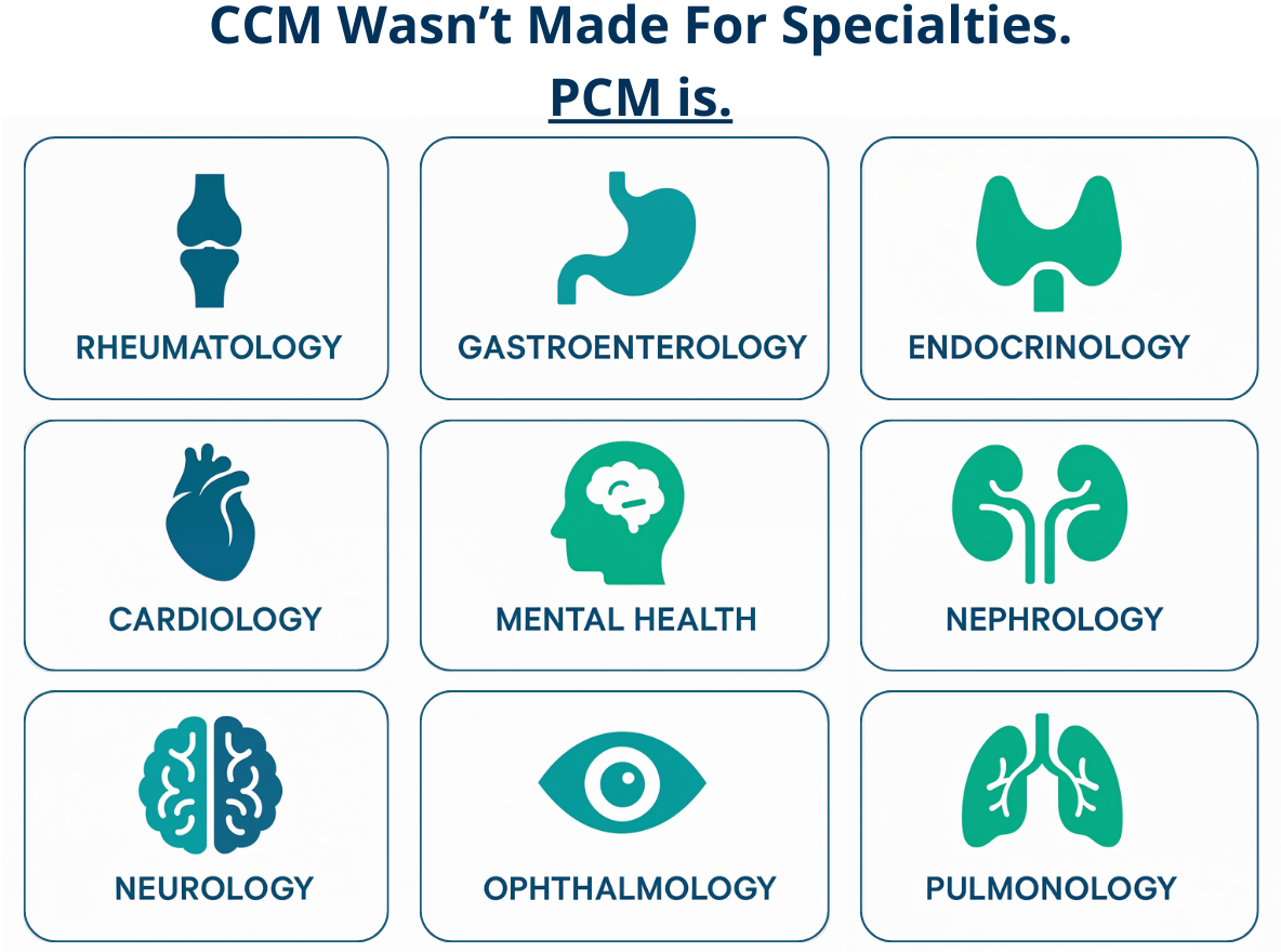 You've seen the potential. PCM was designed specifically for specialty practices, unlike the CCM nightmare of complex care plans and endless documentation.